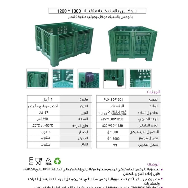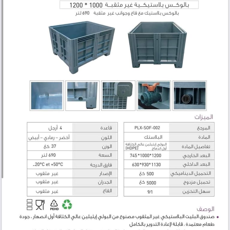 آلات حديثة وحاويات بلاستيكية متينة.